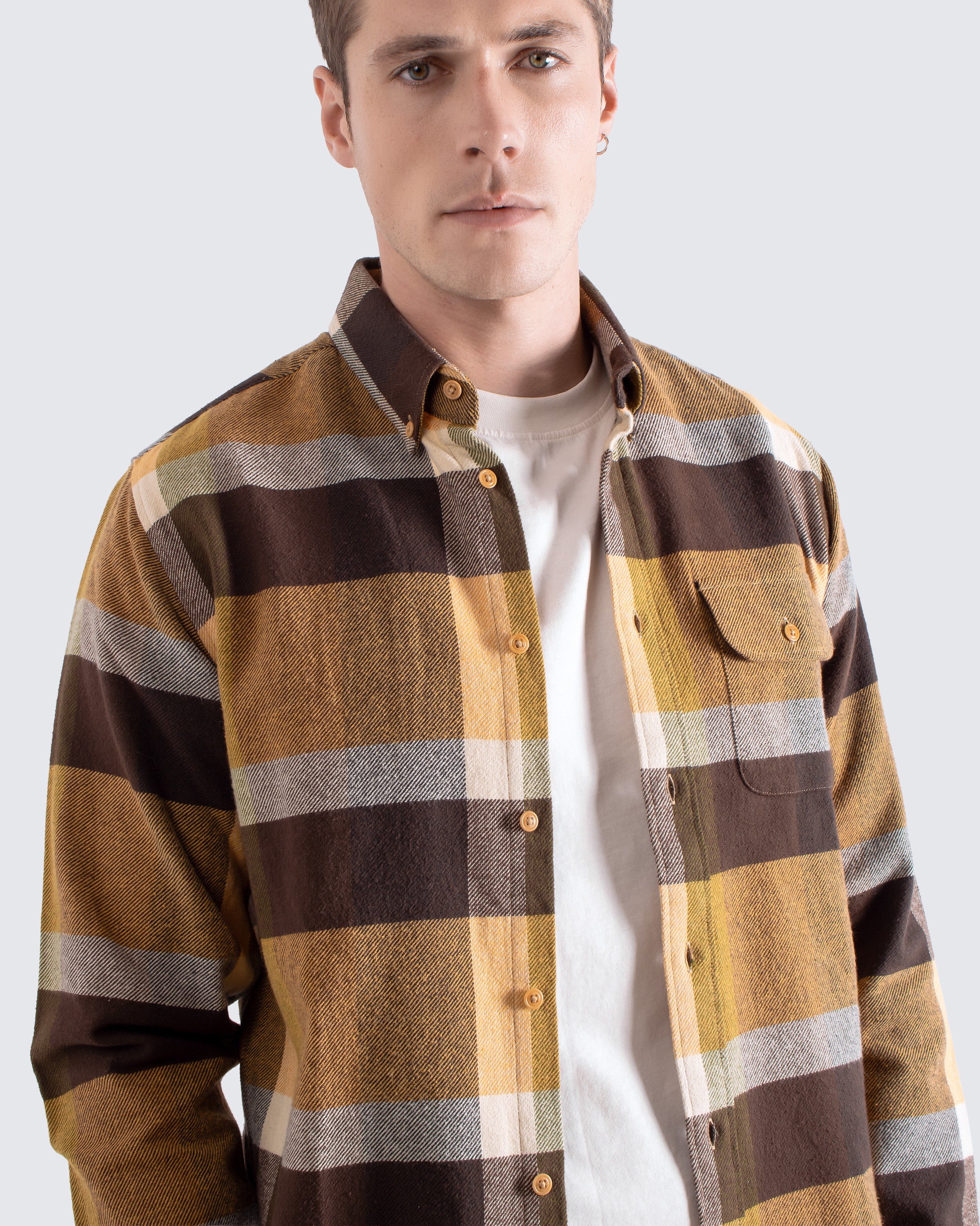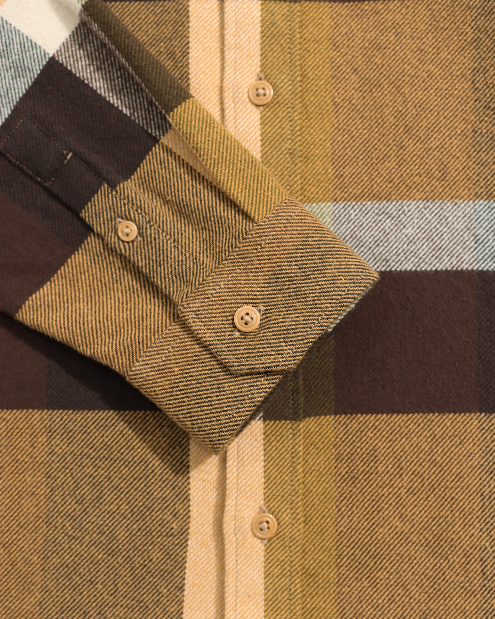 A mainstay of our autumn–winter collections, the Larry Plaid Shirt is rooted in outdoors utility and reworked with a sharper silhouette. Cut from mid-weight brushed cotton for warmth and softness, it features a button-down collar, a single chest pocket and a curved hem that gives a clean, easy shape. Timeless and dependable, it’s a shirt you’ll return to season after season.