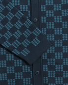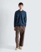 A staple silhouette, revisited each season with fresh pattern and purpose. Knitted from midweight organic cotton with a crisp, structured feel. Tessellated from a single motif, a grid-based repeat nods to early weave patterns and Bauhaus graphics. Framed with solid trims to bring order to the rhythm.