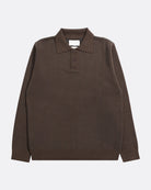 A long-sleeve midweight knit polo defined by bold vertical pinstripes and clean contrast trims at the cuffs, hem, and three-button placket. Its sharp Anglo-Italian character nods to tailoring traditions, brought to life in soft organic cotton. Pulled from our early archives after years off the roster, it returns with a fresh perspective, as sharp as when first conceived.