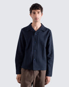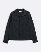 The Veloso is a stripped-back overshirt with a sharp, boxy silhouette. It’s cut from a dry cotton woven with a waffle structure – a pattern of raised and recessed sections that create depth, texture and natural breathability. Designed with an open collar and a clean French front, and finished with tonal corozo buttons, it has an understated character that feels both utilitarian and refined.