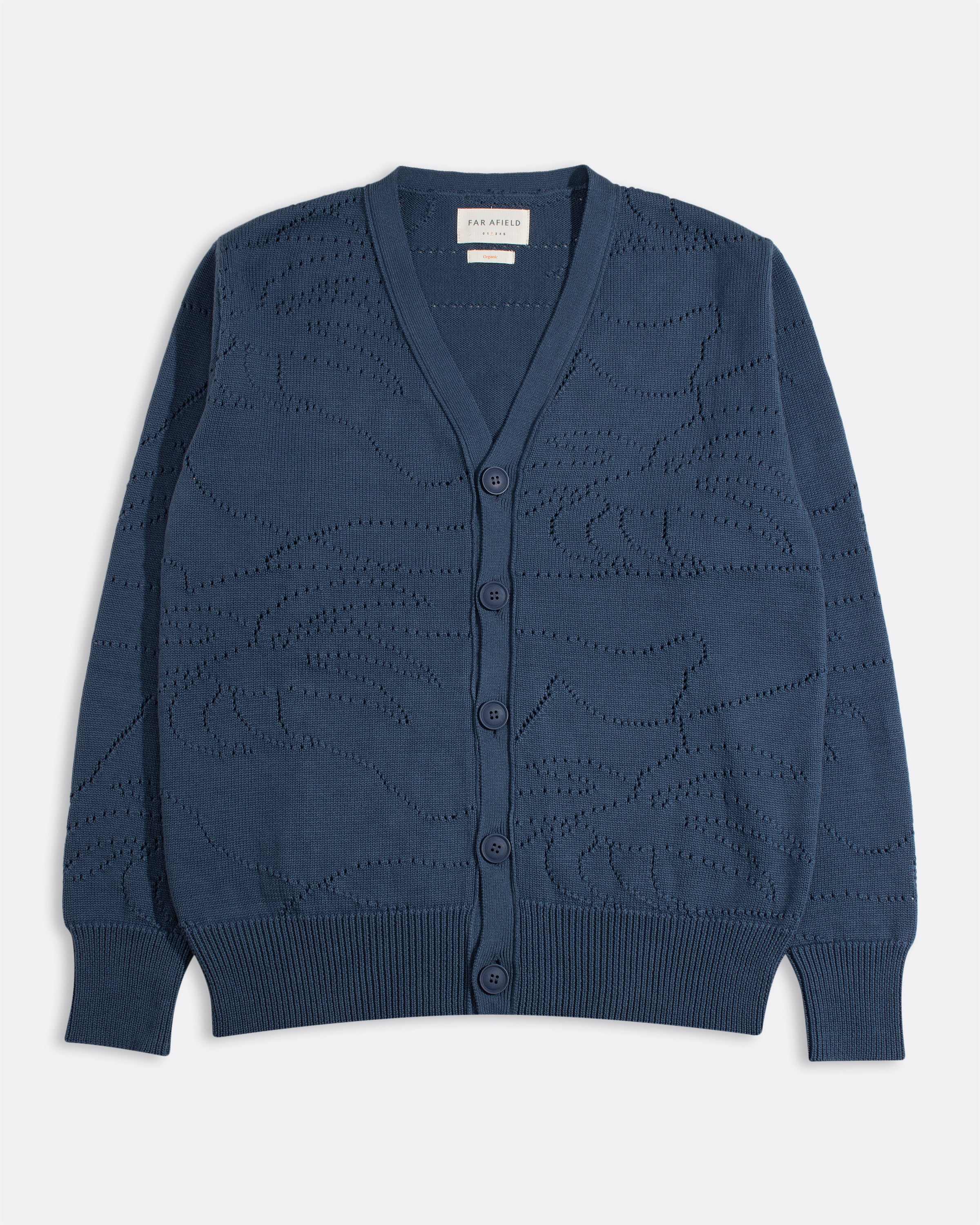 Relaxed knitted cardigan featuring an all-over perforated palm motif. Made in Turkey from locally sourced organic cotton.