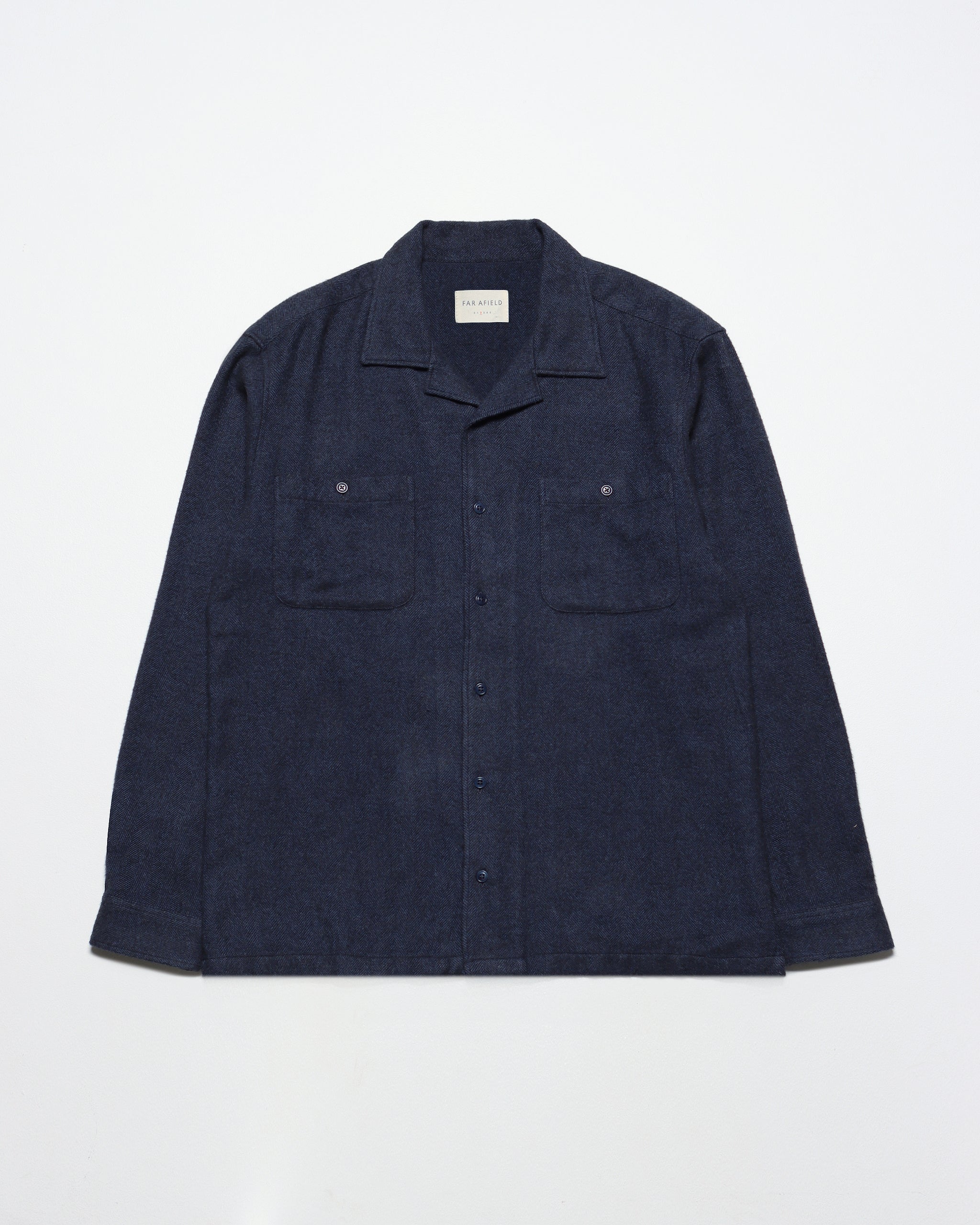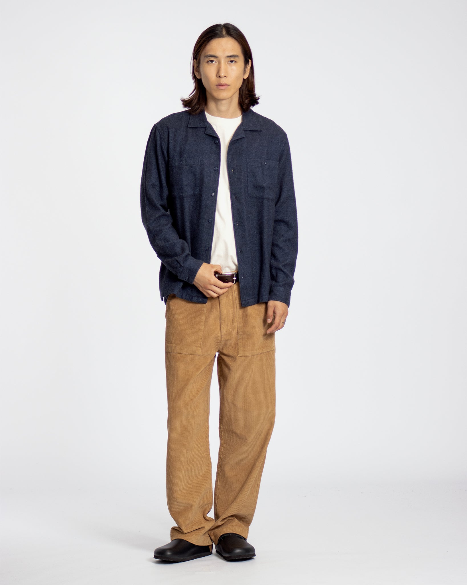 Hiro Shirt - Insignia Blue Brushed Herringbone Cotton