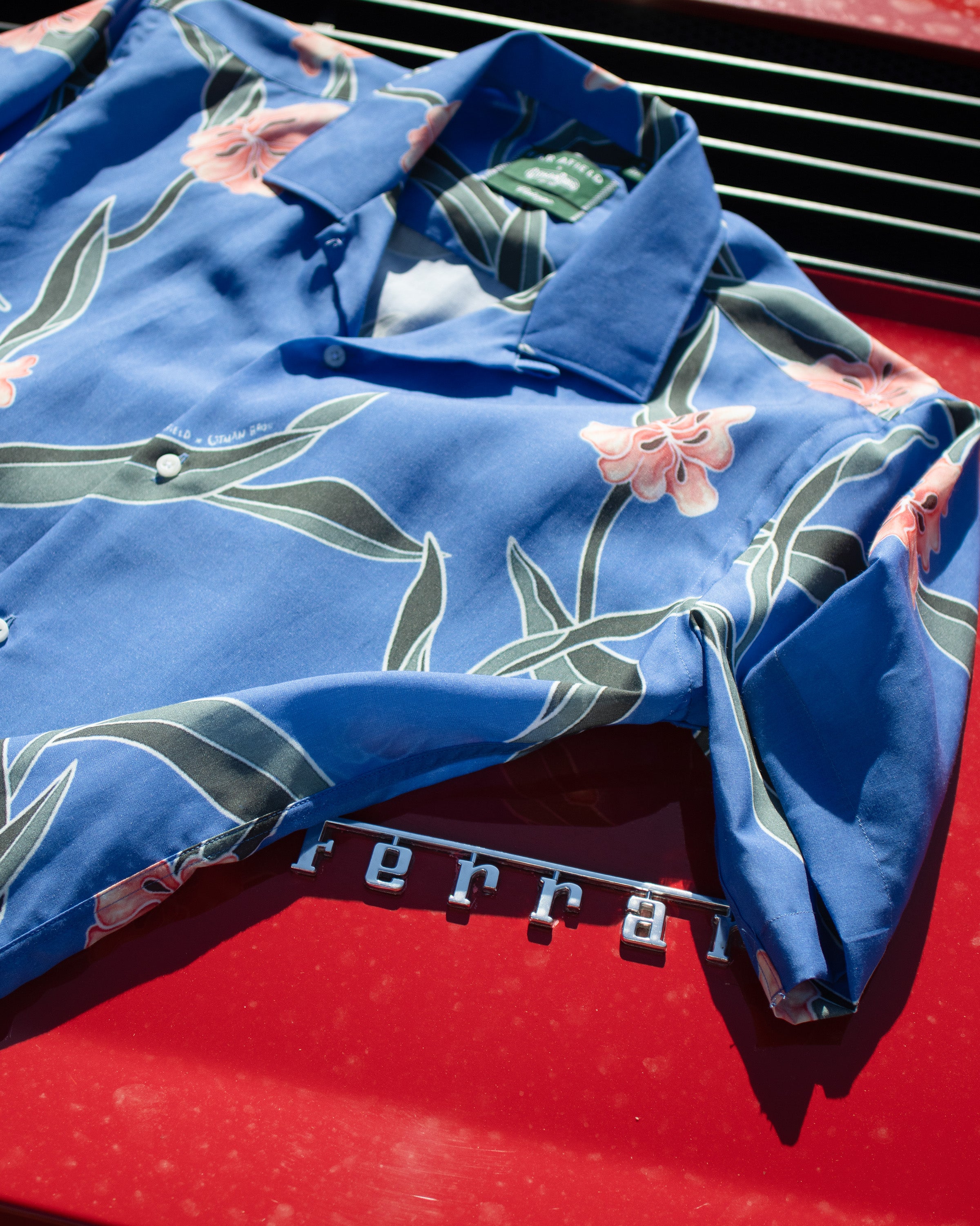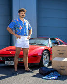 A tribute to a show we’ve always loved, made in collaboration with a brand we’ve long admired. We’ve adapted a shirt worn by Tom Selleck in Magnum, P.I., Season 2, Episode 21, The Elmo Ziller Story. Equal parts throwback and talking point, it captures a singular moment in ’80s TV history: playful, loud, and unmistakably American. Like much of what Magnum wore, it made a lasting impression, the kind of shirt that somehow made big prints feel effortless. Watching as kids (or later, on repeat), we didn’t just want the car, the job, the life; we wanted this shirt.