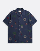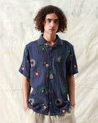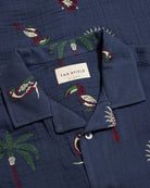 Stachio Shirt - Tropical Embroidery Navy Iris