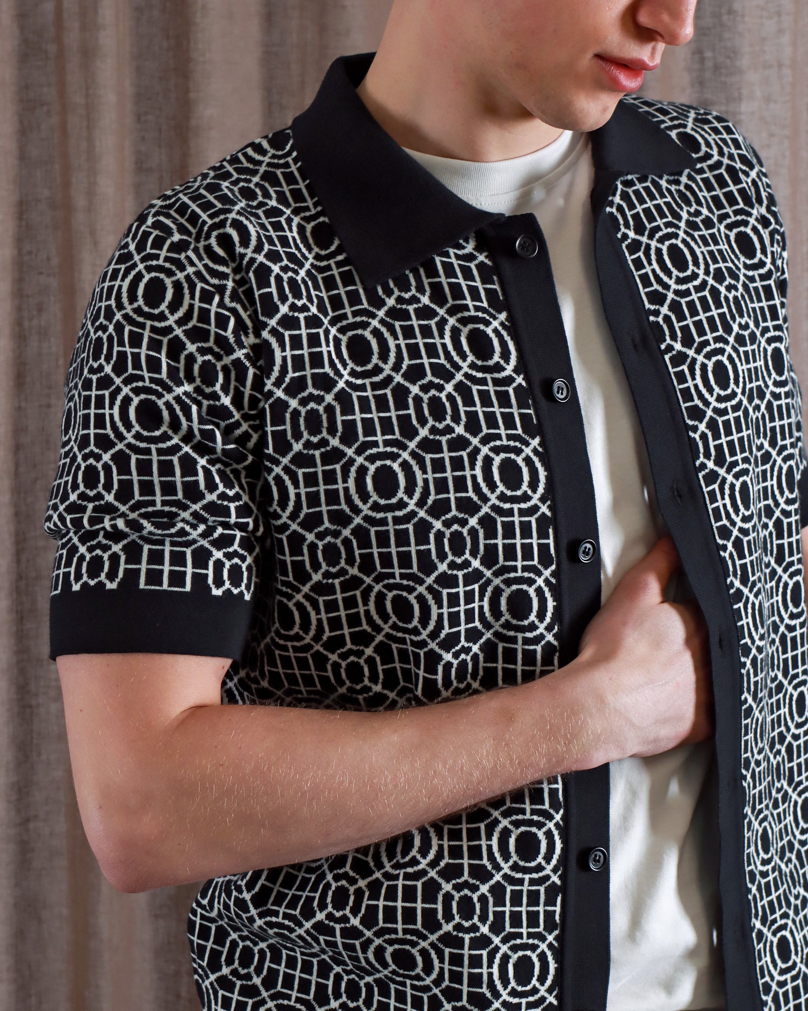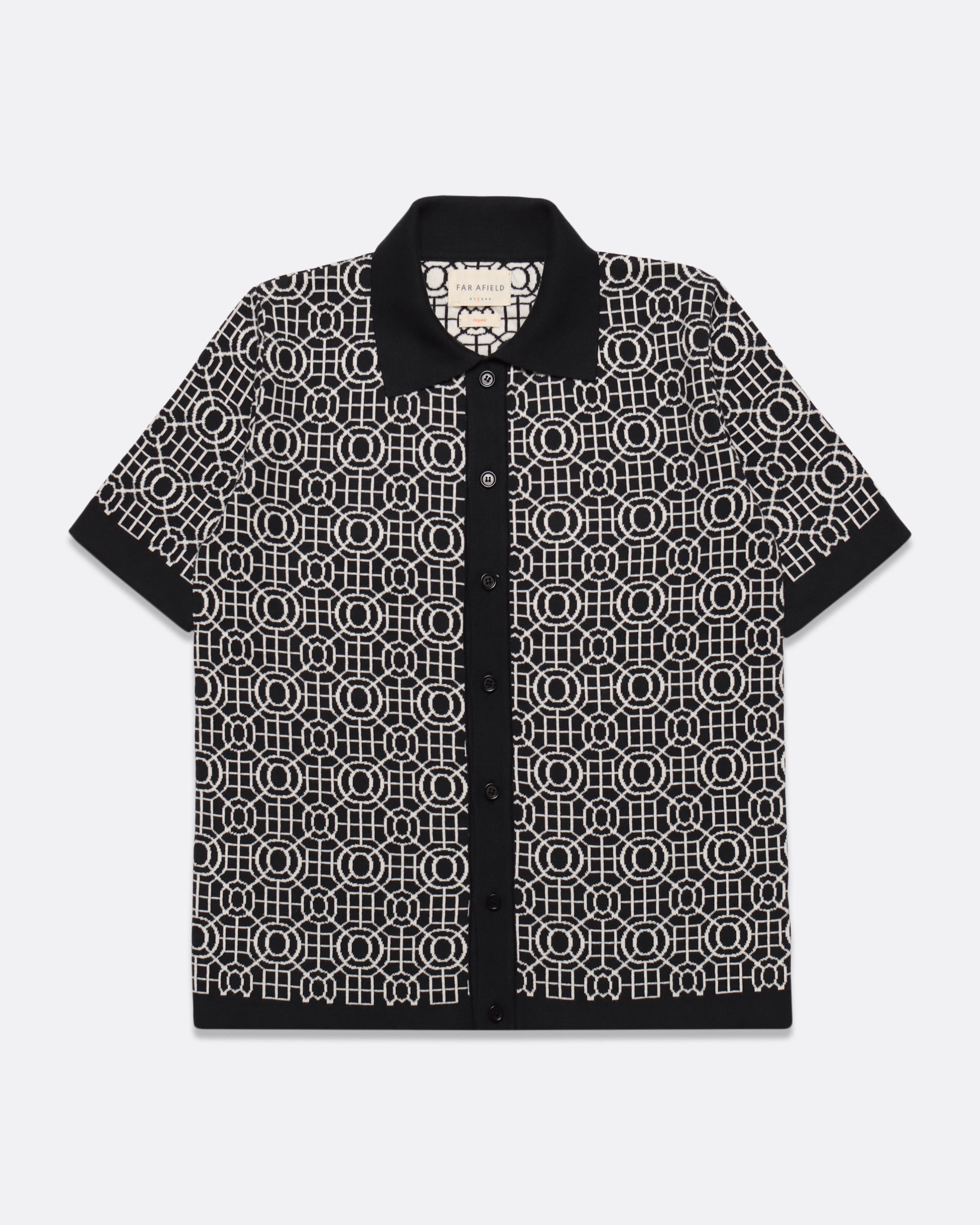 Featuring a repeat print inspired by the ornate wrought iron railings of Brighton's Palace Pier, the Zigger has been crafted with care in Turkey from locally sourced 100% Organic Cotton, and features a 7-button placket, corozo buttons, and a double-ply weighted classic collar.