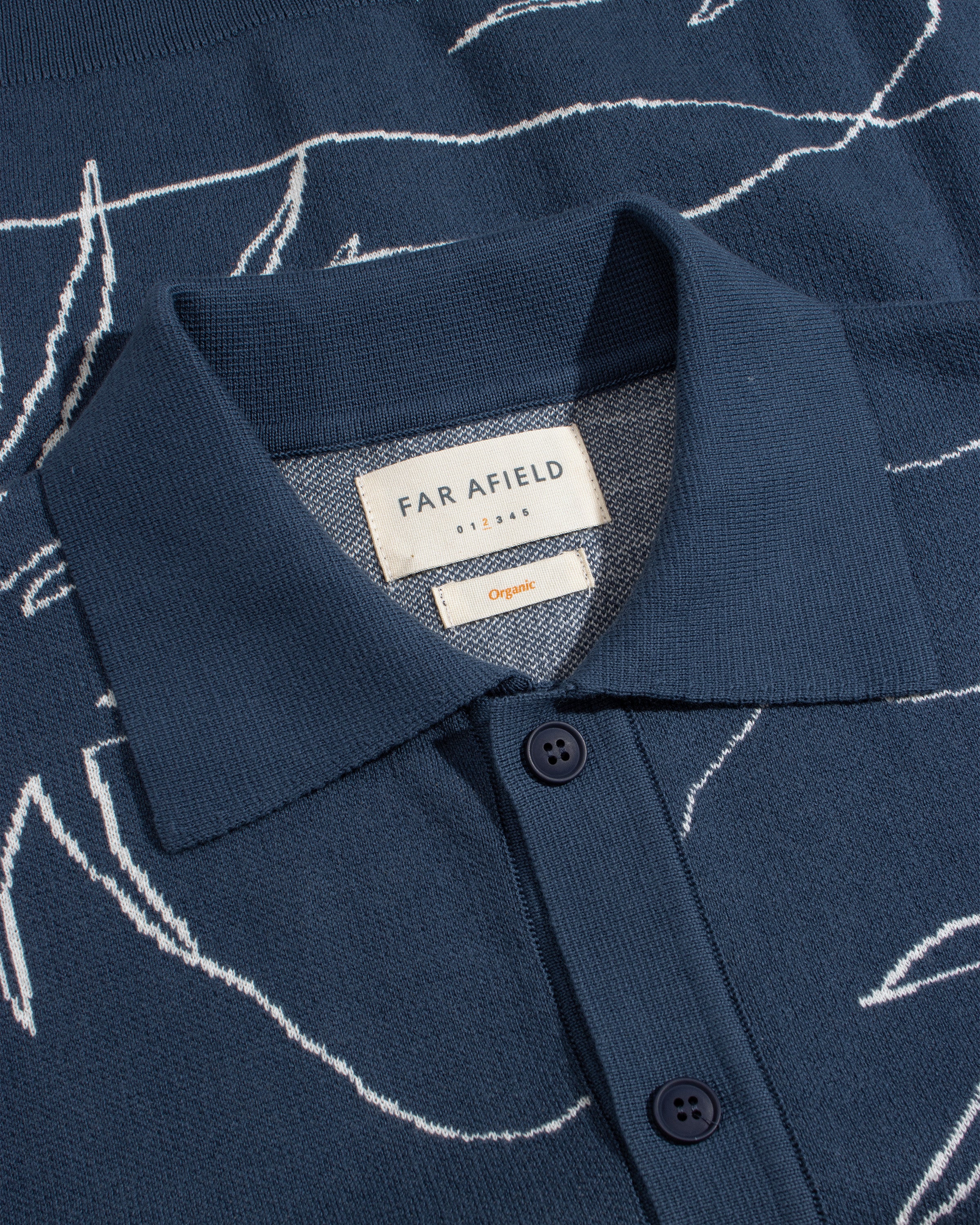 All over two-colour jacquard knit palm motif - pattern-matched at placket