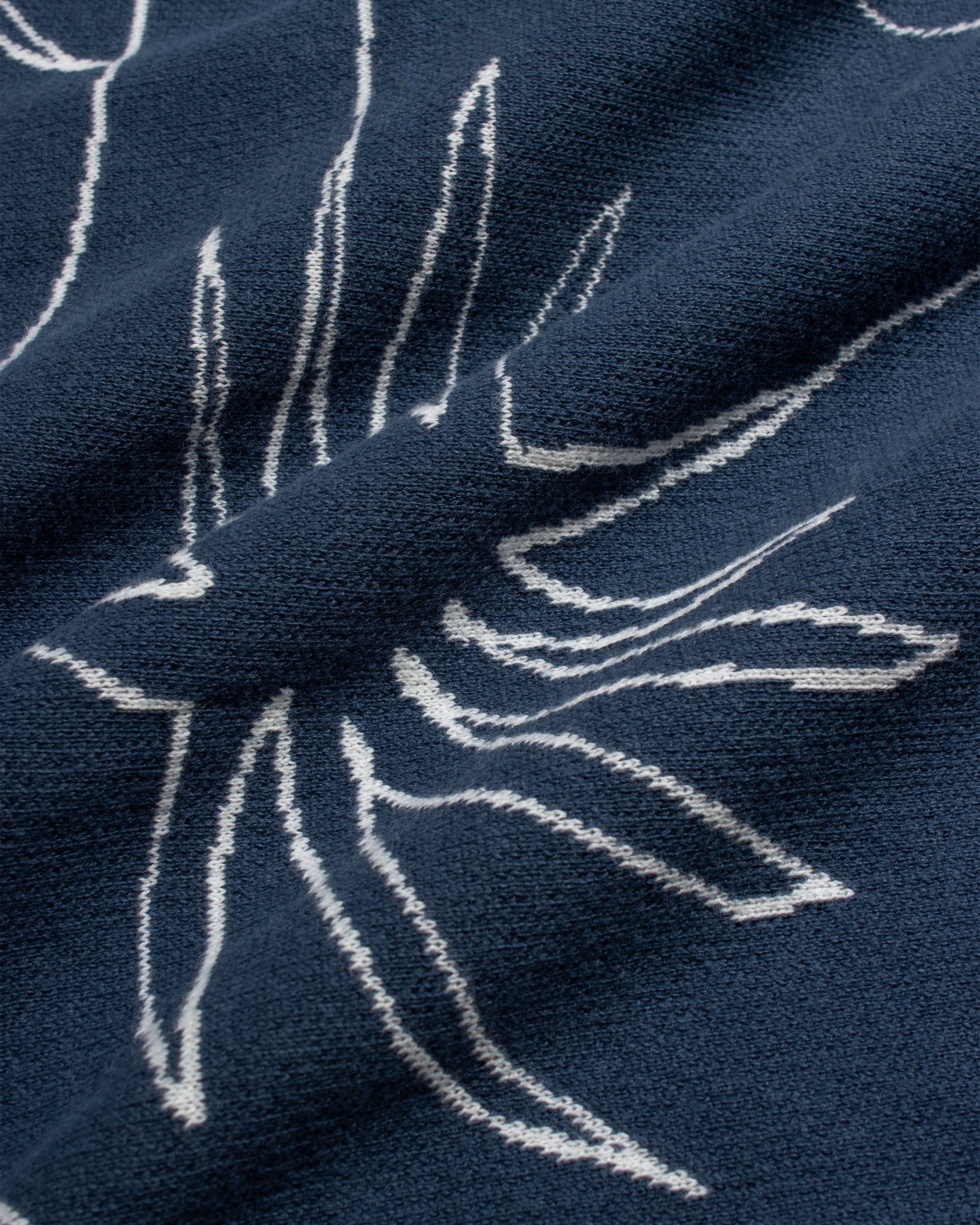 A staple silhouette, revisited each season with fresh pattern and purpose. Knitted from midweight organic cotton with a crisp, structured feel. Features an all-over palm jacquard design.